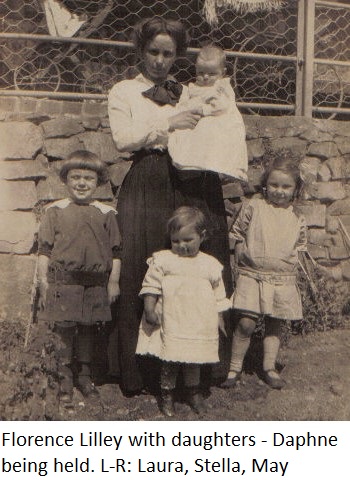 He married Florence Bolton on 17th July 1909. They were both 22 years old. At the time he was working as a Gent’s Outfitter in King Williamstown, Eastern Cape. They eventually produced ten children. Albert Evitt worked for the South African Railways as a station foreman at Kenilworth station. The family lived first in Collingwood Road, Observatory and then in Timour Cottage on the grounds of Timour Hall Manor, Plumstead. (My daughter, Jeanette had her wedding reception at Timour Hall Manor). While at Timour Cottage, the eldest son, Evitt, died of Diphtheria, aged six years. He was buried in Plumstead cemetery. (I have some of the sympathy letters and cards that Grandma always kept in an old, green Victorian teapot of her mother's - on top of the display cabinet in the lounge at 79, Gibson road, Wynberg - now Kenilworth.) It worried my mother that there was no memorial stone on Evitt´s grave- the brother she never knew. In her old age she paid to have a wall put around the grave with the inscription - ¨Our dear brother Evitt Lennox Lilley Born 30-11-1909 - Died 8-1-1916”. Then she was content. That is not the end of the story. When my mother died, her body was cremated. My sisters and I decided to put her ashes in Evitt´s grave at Plumstead cemetery. So Neville and I went to check the grave. There was grass growing on the top, so we decided it would be possible to dig a hole for the ashes. On a Sunday we four daughters with a couple of husbands met at the cemetery to bury the ashes. Only to find that cement covered the grave and grass was growing in a superficial covering of sand. In the end, Mom´s ashes were scattered in the Garden of Remembrance, Bergvliet Methodist where the funeral service had been held.